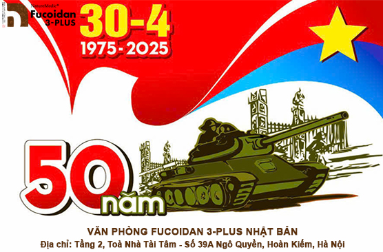 Hoà chung với không khí đại lễ kỷ niệm 50 năm ngày giải phóng miền nam thống nhất đất nước 30/4/1975 – 30/4/2025, Văn Phòng Fucoidan 3-Plus Nhật Bản Tại Việt Nam xin gửi tới các Bà, các Bác, các Cô, các Chị Em nhiều niềm vui, hạnh phúc và luôn khoẻ mạnh! Nhân dịp này Văn Phòng Fucoidan 3-Plus Nhật Bản xin gửi tới toàn thể Quý khách hàng chương trình khuyến mại cực lớn. Chương trình áp dụng cho sản phẩm Fucoidan 3-Plus dạng nước và Fucoidan 3-Plus dạng viên.