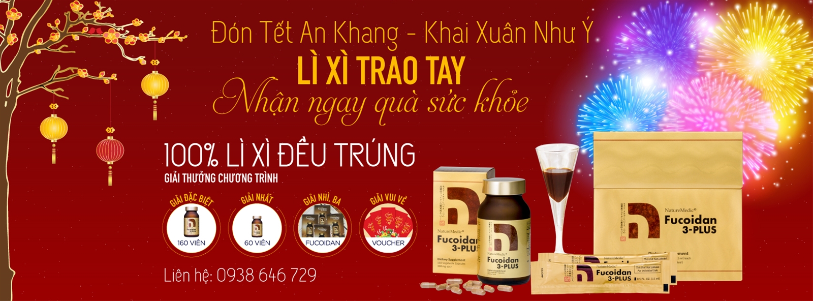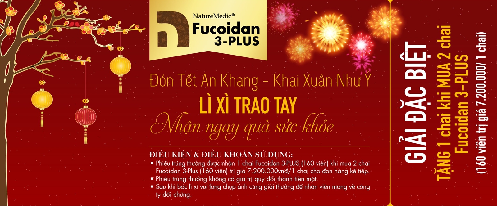 Với mỗi đơn hàng đầu năm, Văn Phòng Fucoidan 3-Plus Nhật Bản trân trọng gửi đến quý khách một bao lì xì may mắn thay lời chúc, lời tri ân của chúng tôi đến quý khách. Cám ơn quý khách đã đồng hành cùng chúng tôi trong suốt chặng đường qua.