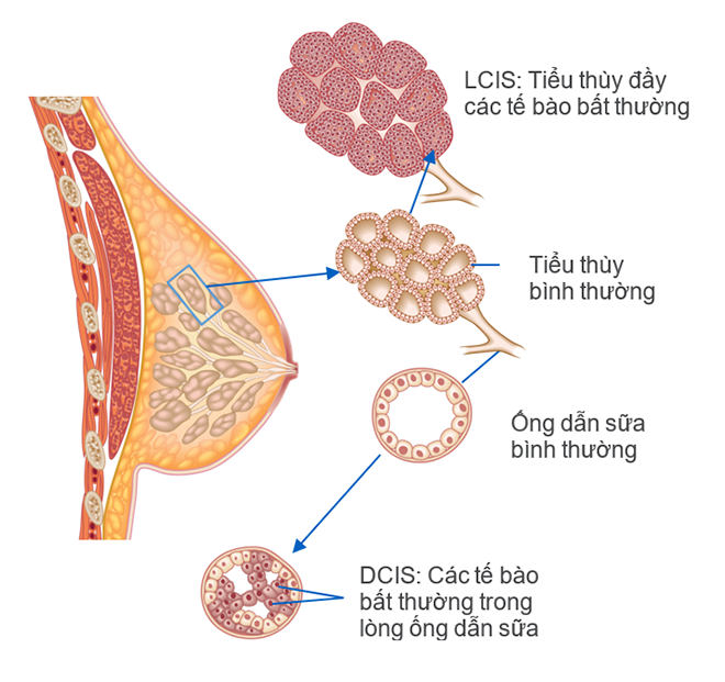 Ung thư vú không xâm lấn (Ung thư vú tại chỗ): gồm