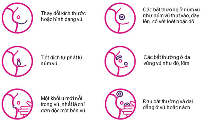 Mặc dù các triệu chứng trên cũng có thể gặp trong nhiều bệnh lý lành tính của tuyến vú, tuy nhiên tốt nhất bạn nên đến khám và được bác sĩ tư vấn nếu gặp bất kỳ triệu chứng nào kể trên.